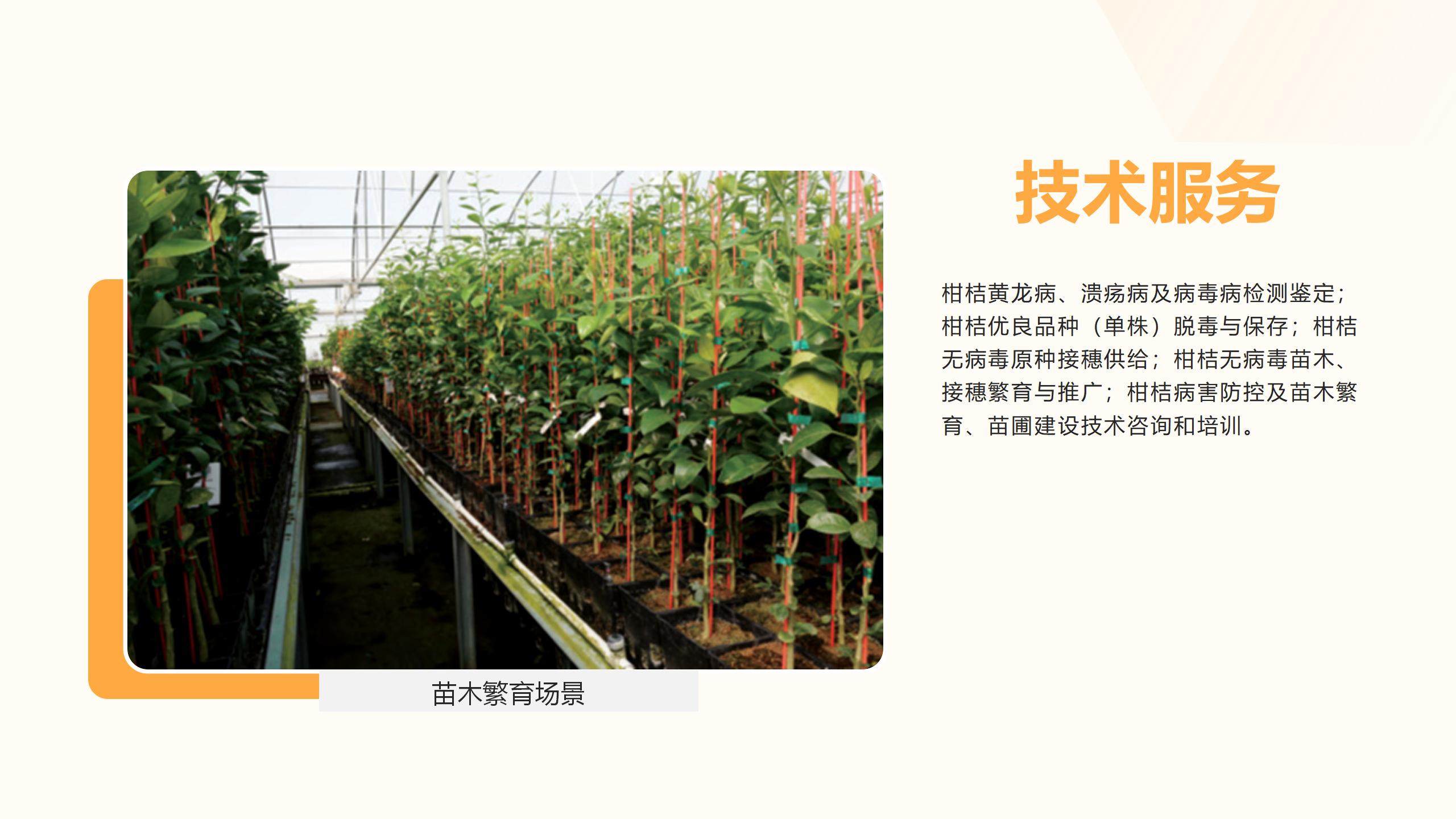 此外,该中心保存无病毒原原种500余个,具备年脱毒品种100个,提供无病毒接穗50万芽,年出圃无病毒容器苗50万株的能力。