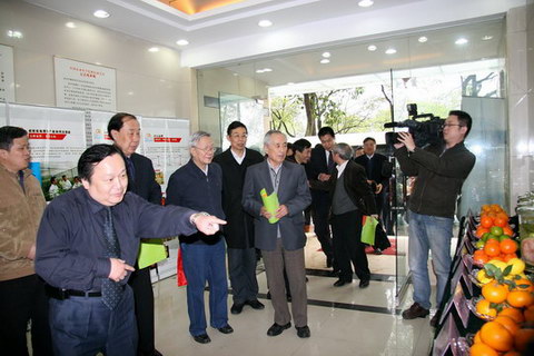 陈善春研究员向院士们简单介绍了我国柑桔产业的现状和我所的近年来科研与事业发展情况,并带领他们考察了国家柑桔苗木脱毒中心、国家柑桔品种改良中心等科研平台的试验室,以及国家种质资源圃野外保存圃、国家品种改良中心育种圃、国家柑桔无病毒一级采穗辅和苗圃等地。