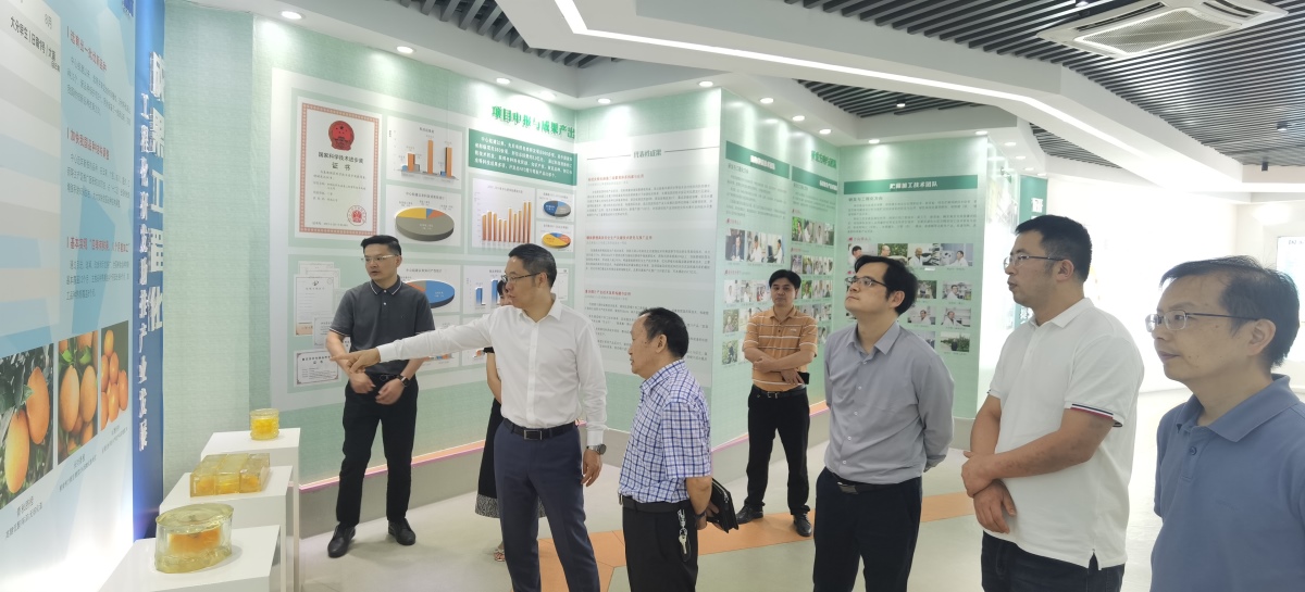 调研座谈会前,唐峰一行实地参观考察了国家柑桔工程技术研究中心展厅、加工中试车间、“七化果园”基地。