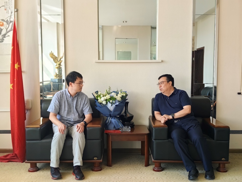 王进军副校长(右)与曹孟籍研究员亲切交流