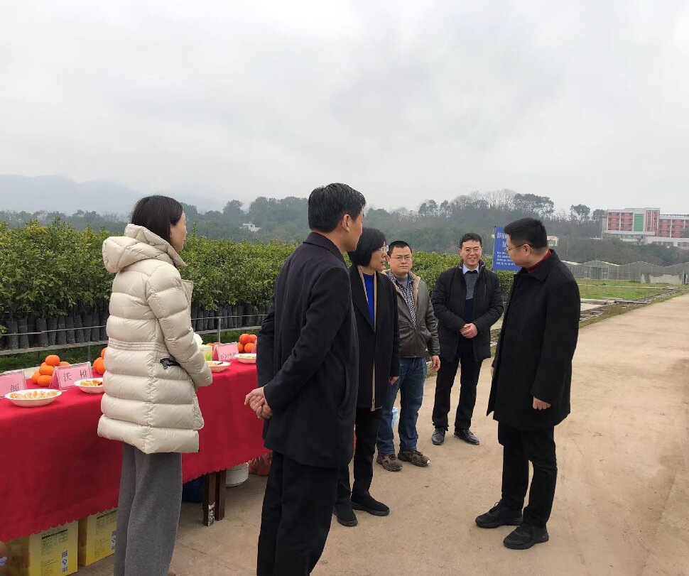 上午10时许,刘贵忠一行莅临所内的北碚区柑橘区域性良种繁育基地,所党委副书记、纪委书记刘昭暾代表所里表示热烈欢迎并简要介绍了柑桔研究所的基本情况,国家柑橘苗木脱毒中心主任周彦研究员就基地建设进展与困难、柑桔病毒防控形势、柑桔品种与发展等相关情况作了详细说明。刘贵忠对北碚区政府高度重视农业安全生产给予了充分肯定,同时对我所作为重要的国家柑桔专业研究单位,为全国柑桔产业、尤其是重庆柑桔产业发展付出的劳动表示关切与慰问,刘贵忠还强调指出,我们要加大努力,特别是着力加强人才引培,在柑桔事业发展上掌握更大的主动权和更加充分的话语权。