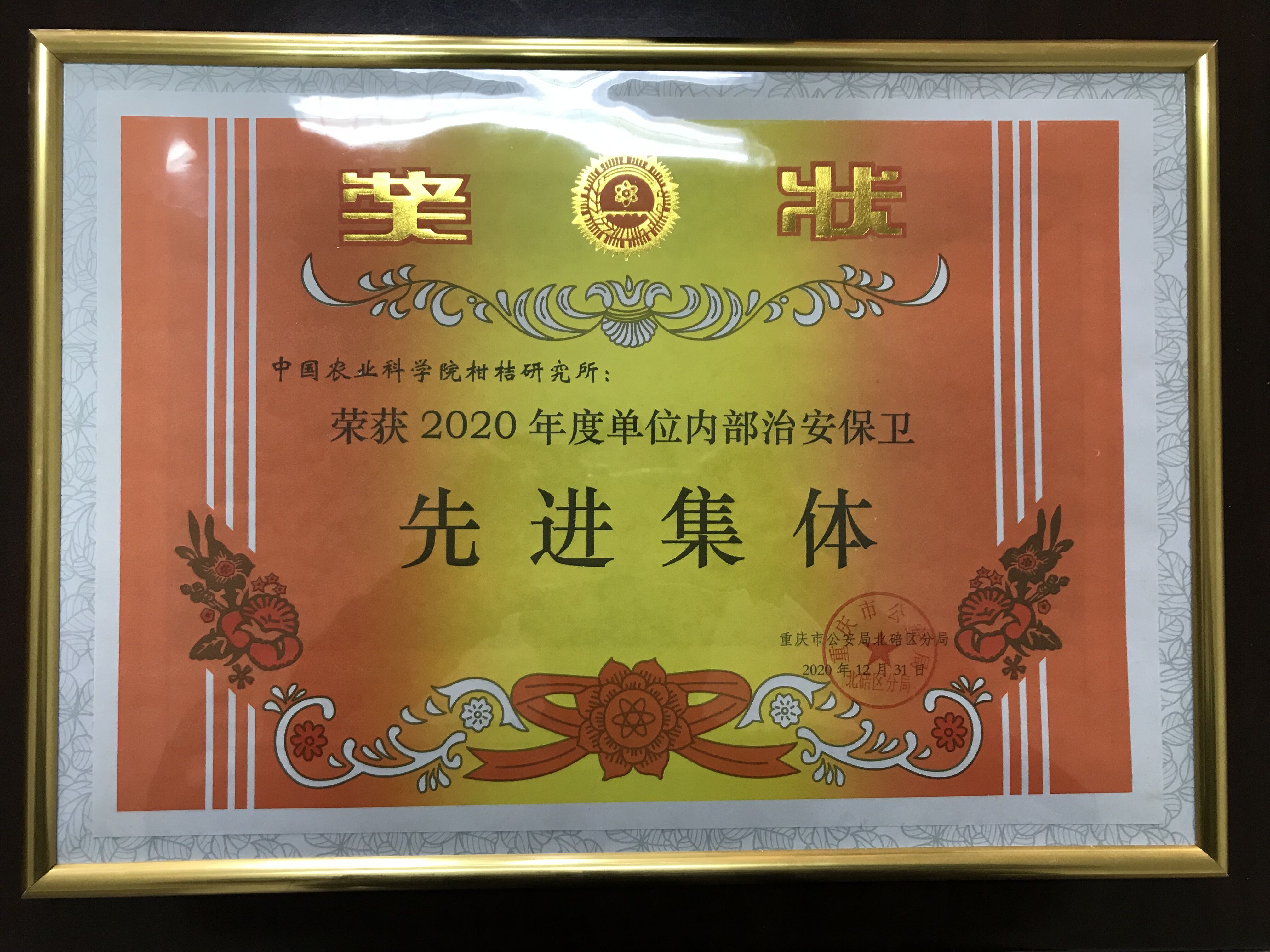 • 我所荣获“北碚区2020年 内部治安保卫先进集体”荣誉称号