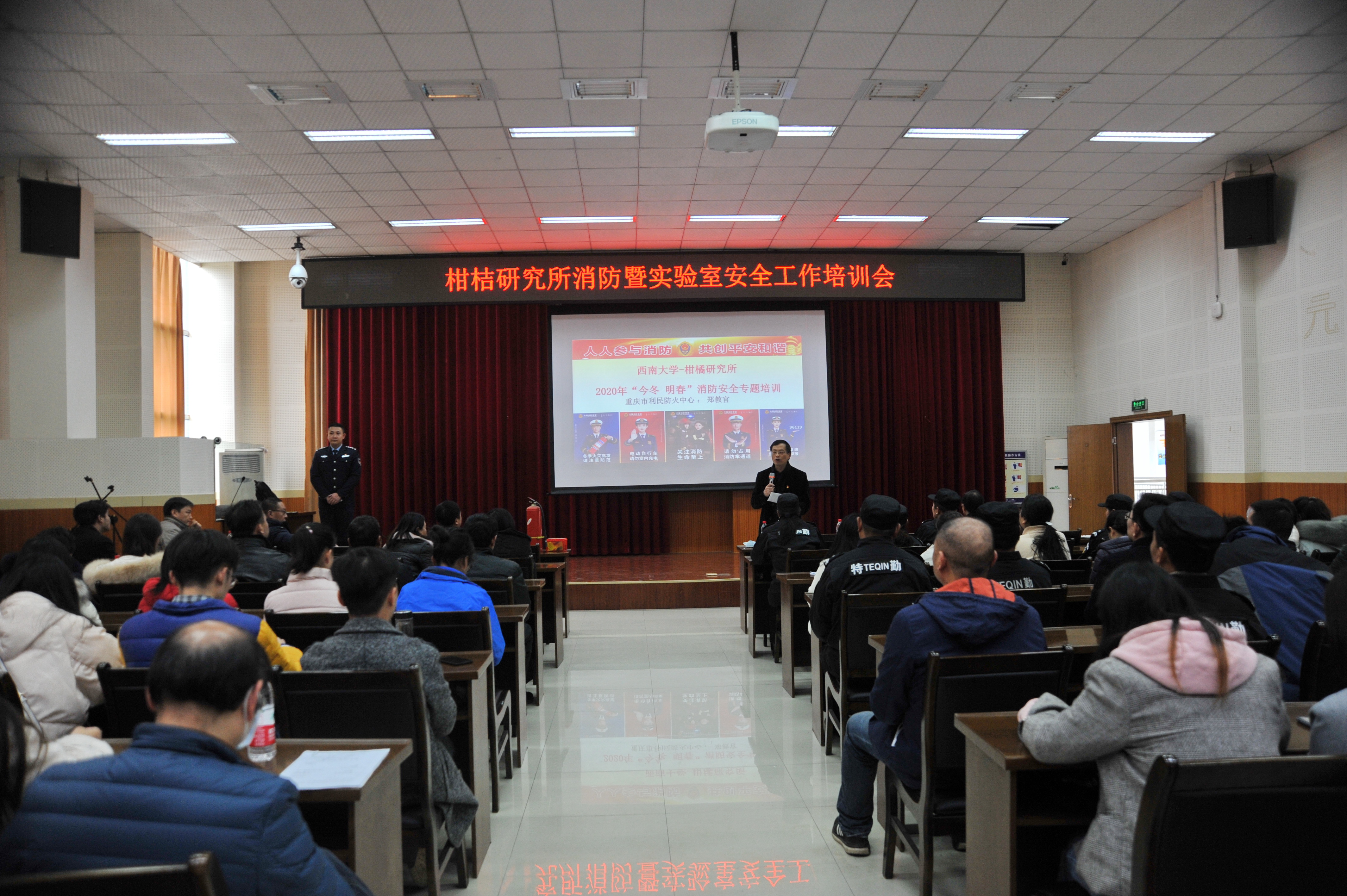 12月11日,柑桔研究所2020年度实验室安全知识培训暨消防知识培训会在研究生公寓多功能厅举行。全所师生员工、科研助理及合同外聘人员参加了培训。所领导尹晓东、黄森、丁增富、王雪峰,所长助理李中安以及原副所长陈云等出席培训会。培训会由副所长丁增富主持。
