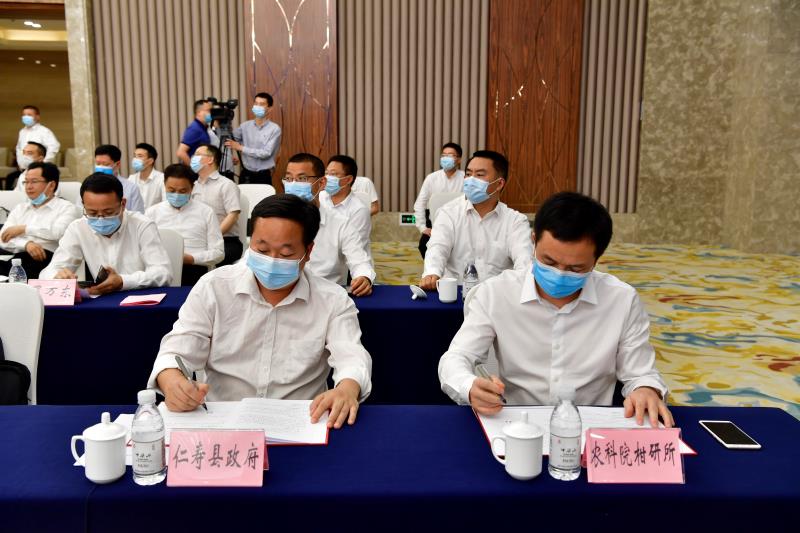 为推进眉山市仁寿县柑桔产业结构调整和产业升级,打造仁寿县名优柑桔品牌,探索产学研紧密结合,推进科技服务地方经济发展的新模式,近日,仁寿县人民政府副县长黄勇、柑桔研究所党委副书记黄森在重庆雾都宾馆分别代表双方签订科技合作框架协议。