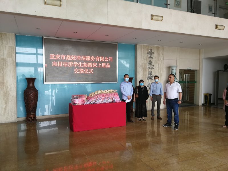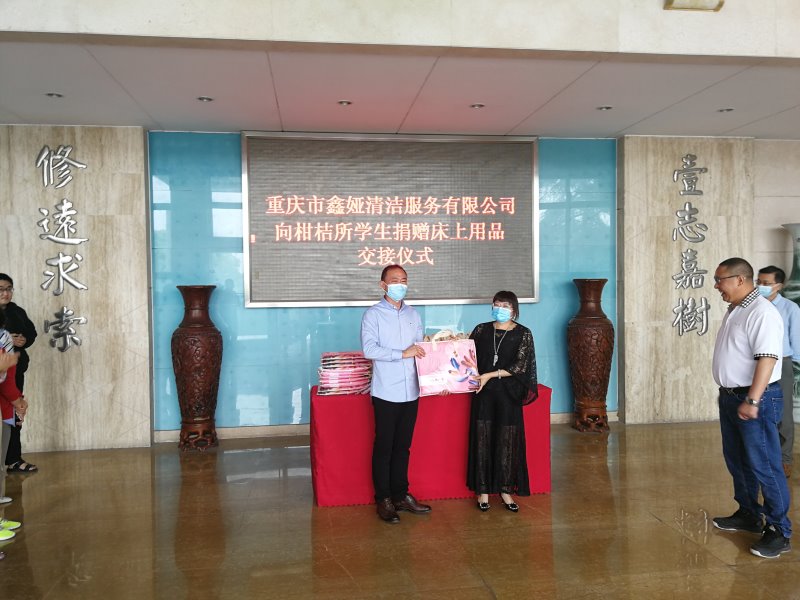 在主持人热情洋溢的开场白后,爱心捐赠仪式正式拉开帷幕。此次捐赠,重庆鑫娅清洁服务有限公司为我所每位研究生准备了温暖的三件套床上用品。周乐顺副书记代表我所接受鑫娅清洁服务有限公司的捐赠,并对捐赠企业为学校事业发展、对学生生活上的关心与帮助表示衷心的感谢。