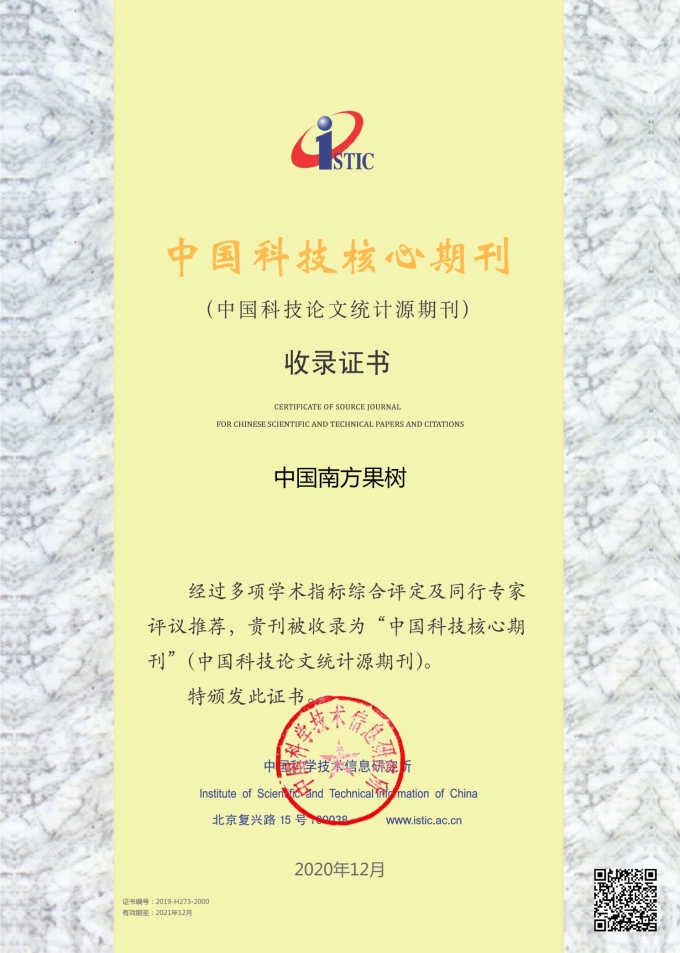 • 《中国南方果树》再次入选“中国科技核心期刊”