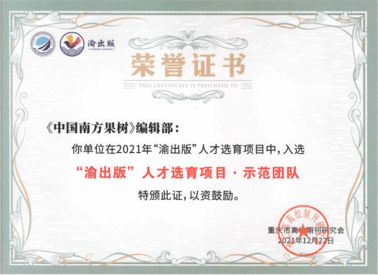 • 《中国南方果树》入选多个“渝出版”人才选育项目