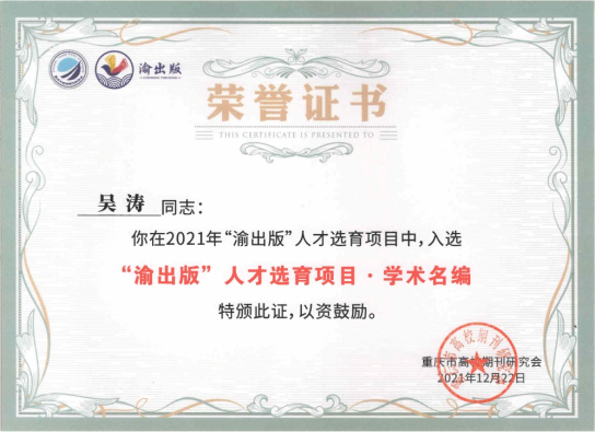 12月22日,重庆市高校期刊研究会在2021年会员代表大会上公布了2021年度“渝出版”人才选育项目遴选结果,共评选出学术名编21名、学术优编45名、示范团队20个。