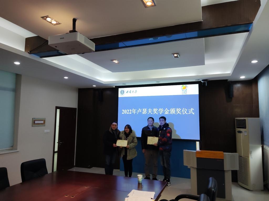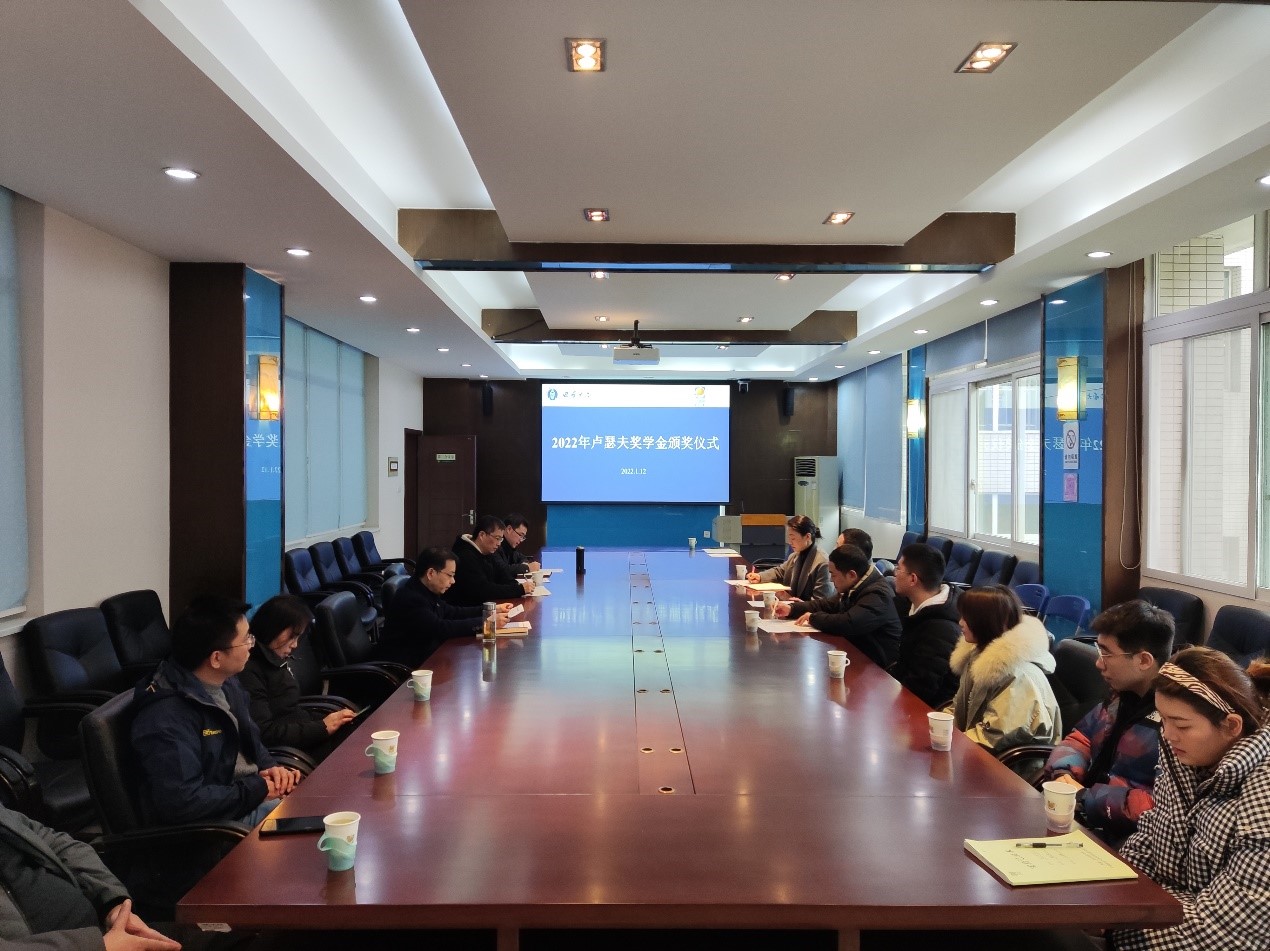 卢瑟夫教授因疫情原因今年未能现场参加评奖和亲临颁奖仪式。他通过评选工作小组工作人员了解到获奖同学的情况,认为获奖同学都非常优秀,符合其设立该奖学金的初衷并勉励同学们继续努力。颁奖仪式上,奖学金评选委员会副组长吴厚玖研究员介绍了卢瑟夫教授本人近况及该奖学金的基本情况并转达了卢瑟夫教授对获奖学生的祝贺。据吴老师介绍,卢瑟夫奖学金已经累计发放四届,共有24名优秀研究生获奖,奖励总额共计8万余元。王雪峰副所长介绍了今年卢瑟夫奖学金评选的情况;田再悦副主任宣读了获奖名单并获奖同学表示祝贺,勉励同学们继承和发扬卢瑟夫教授严谨的科研态度和博爱的科研情怀。柑桔所尹晓东书记致辞,代表柑桔所对卢瑟夫教授设立奖学金表示感谢,也对学校基金会的大力支持表示感谢;同时向获奖的同学表示祝贺,希望加工团队的师生在柑桔加工传统优势基础上,勇于创新,拓宽思维,再创佳绩。