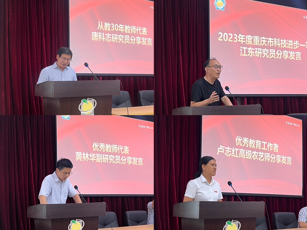 优秀教育工作者代表卢志红高级农艺师进行了分享发言。卢志红老师分享了来所二十六年的工作经历与心得体会,初到柑研所,生活苦涩,但在所党政班子的领导下,大家携手渡过了一个个难关。卢志红表达了自己对于柑桔科技推广工作的热爱,并勉励全体教职工热爱柑桔所、愿作柑桔人,不忘献身柑桔事业、一直砥砺前行。