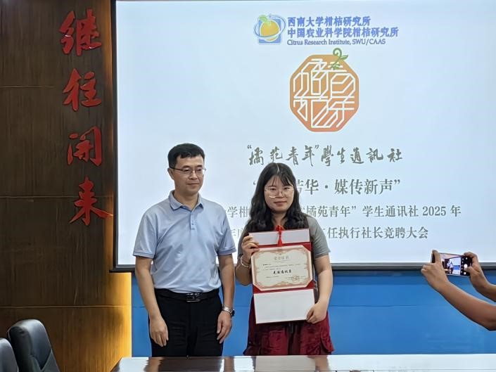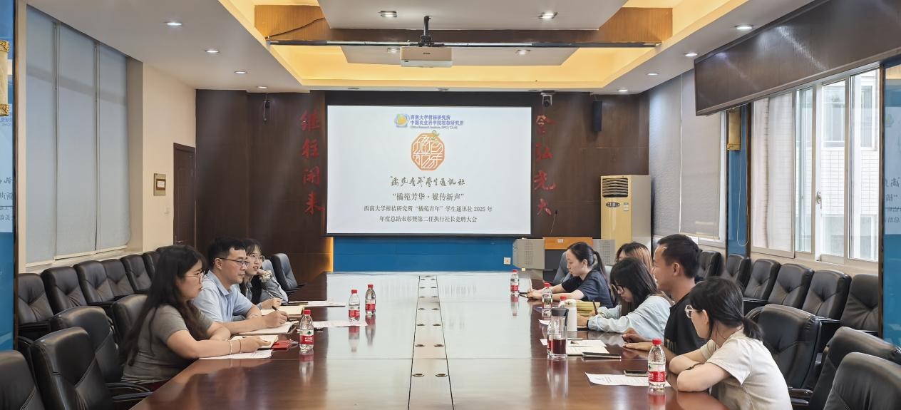 六月的重庆洋溢着如火的热情,2025年6月25日下午,best365英国体育在线柑桔研究所“橘苑青年”学生通讯社 (以下简称“学通社”)2025年度总结表彰暨第二任执行社长竞聘会在柑桔研究所综合楼二会议室召开。本次会议以“橘苑芳华・媒传新声”为主题,汇聚了全体通讯员、指导老师,所党委副书记、纪委书记刘昭暾参会,共同回顾过去一年“学通社”的成长与收获,展望未来发展的新征程。
