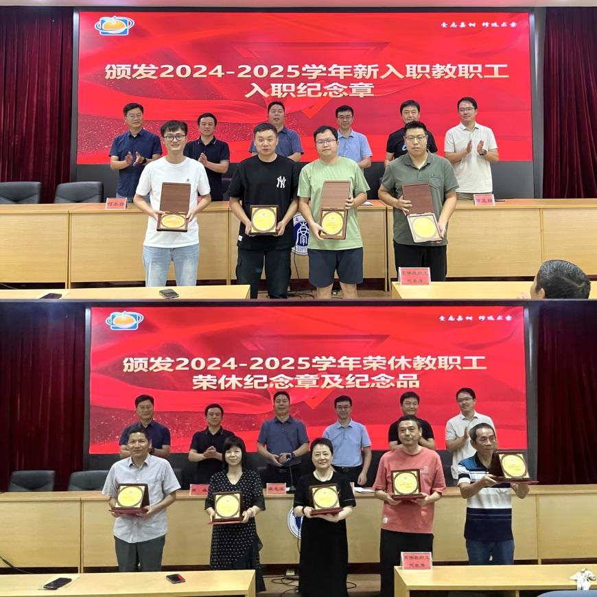 会上,在家所领导为2024-2025学年新进教师颁发了入职纪念章,为2024-2025学年荣休教职工代表颁发了荣休证书和荣休纪念章,并合影留念。
