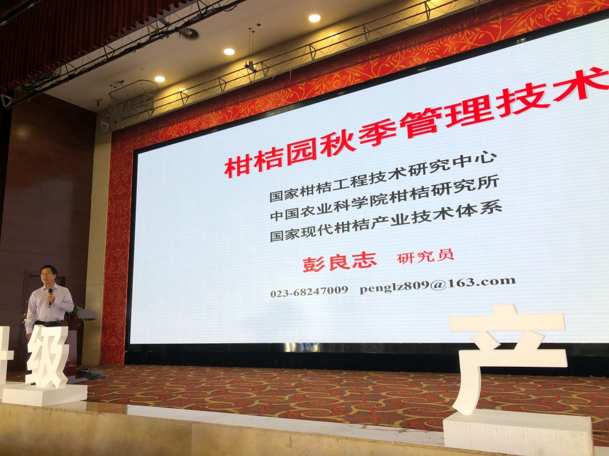 国家柑桔工程技术研究中心主任周常勇研究员作《我国柑桔产业如何转型以及重点虫传病害防控策略》、赵晓春研究员作《柑桔种质创新与利用》、彭良志研究员作《柑桔园秋季管理技术》三个主题学术报告。