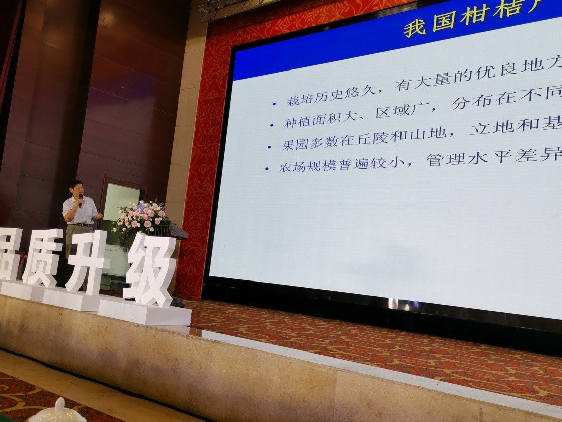 赵晓春研究员对我国柑桔品种资源、品种创新、市场需求方面进行了讲解,并介绍了中国农业科学院柑桔研究所近年培育的一批主要柑桔品种。