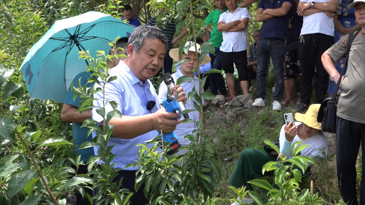 去年8月正是重庆脆李结果成熟前期,不少农户面临着病虫害、修枝等问题。科技特派员专家团脆李现场课就来到了丰都县虎威镇脆李果园里,来自山东省枣庄市农业农机技术推广中心的专家安广池、重庆市农科院方波博士,冒着酷暑手把手地在果园里进行技术演示,不仅让现场的农户学得一清二楚,也让观看直播的观众看得明明白白。