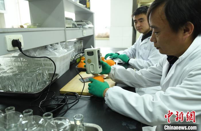 图为工作人员在实验室用仪器检测柑橘所含糖分的多少。 周毅 摄