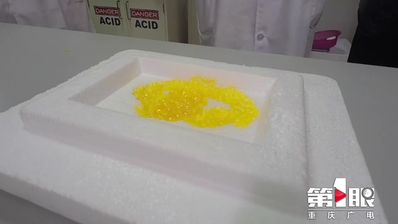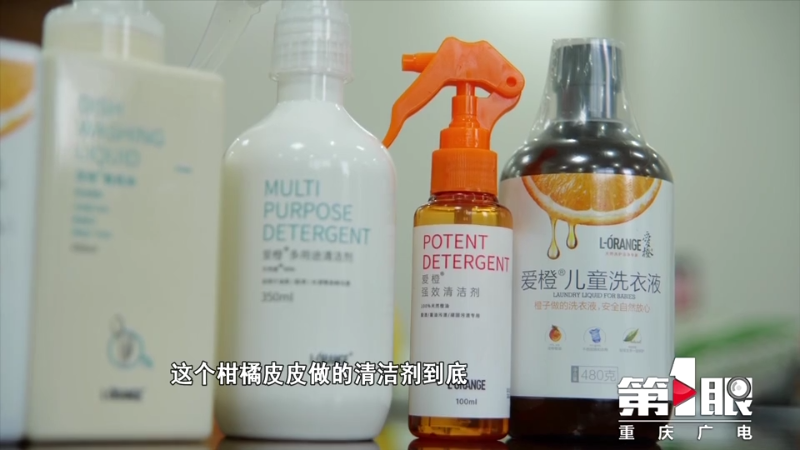 黄博士又让小草做了一个实验,将精油滴到泡沫上,五六分钟后,这块泡沫就穿了一个洞。黄博士说,这是因为精油里面的主要成分是柠檬烯,它的溶解性非常强。根据这个原理,他们还进行了一系列清洁剂的产品研发。