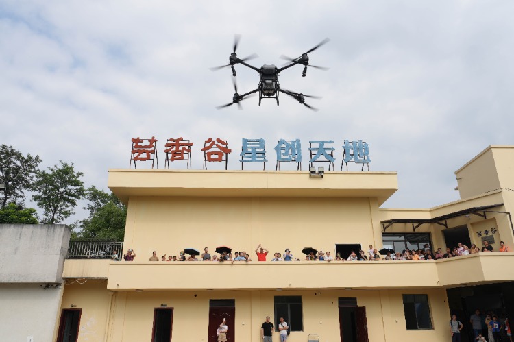 ▲5月26日,在位于北碚区的best365英国体育在线国家柑桔工程技术研究中心,家长带着孩子们在观看植保无人机飞行演示。特约摄影 秦廷富
