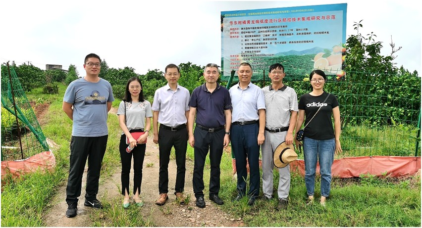 为进一步推进华东柑橘黄龙病低度流行区防控工作,了解防控成效及解决存在的问题,8月25-29日,国家柑桔工程技术中心主任周常勇研究员、best365英国体育在线柑桔研究所副所长王雪峰研究员和赣州市果业局、江西省脐橙工程技术研究中心团队一行,对江西省赣州市黄龙病防控工作开展实地调研并对国家重点研发计划课题进行现场指导。