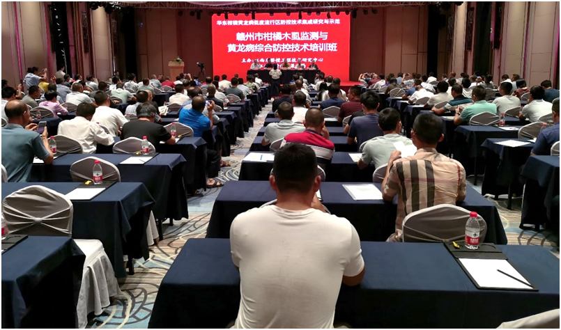 随后,周常勇研究员和王雪峰研究员受邀为“赣州市柑橘木虱监测与黄龙病综合防控技术培训班”授课,就柑橘黄龙病的国际国内防控形势、防控研究进展等内容作了专题培训。参训人员在会上认真听讲,会后与专家就生产实践中遇到的问题积极交流。此次培训会将进一步夯实赣州市黄龙病防控成果,保障赣南脐橙产业可持续发展。
