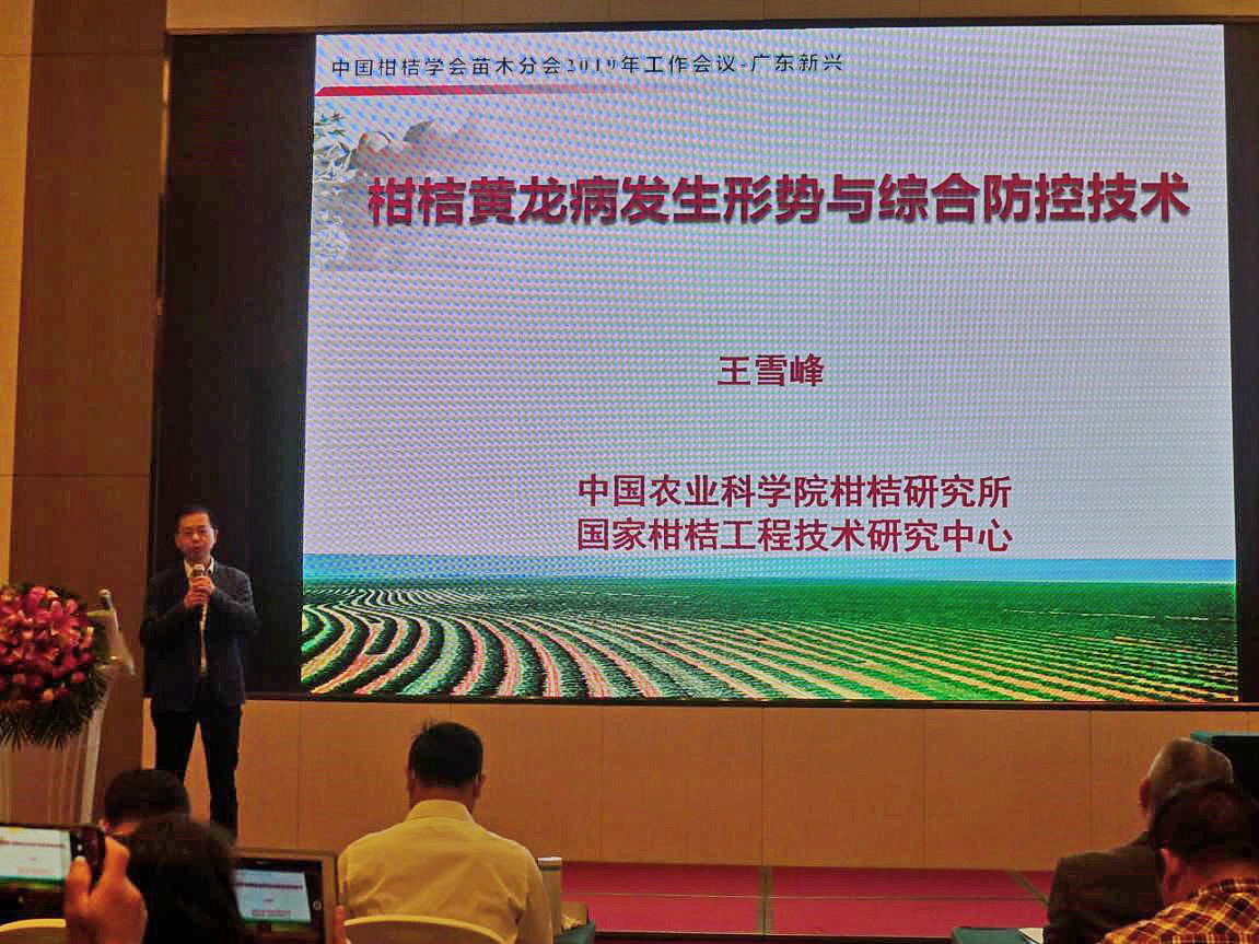 2019年11月7-9日,由中国柑桔学会苗木分会、国家柑桔工程技术研究中心、国家柑桔黄龙病综合防控协同创新联盟共同主办的 “2019年中国柑桔学会苗木分会年会”在广东新兴县召开。全国农业技术推广服务中心王克健、苗木分会理事长吴厚玖研究员、苗木分会秘书长李中安研究员、广东天禾农资股份有限公司副总经理姚伟英及中国柑桔学会副理事长白先进研究员出席会议;我所周常勇研究员、副所长王雪峰研究员、朱世平副研究员、李太盛副研究员、杨方云副研究员、卢志红高级农艺师、姜国金主任及徐忠强等参加会议。