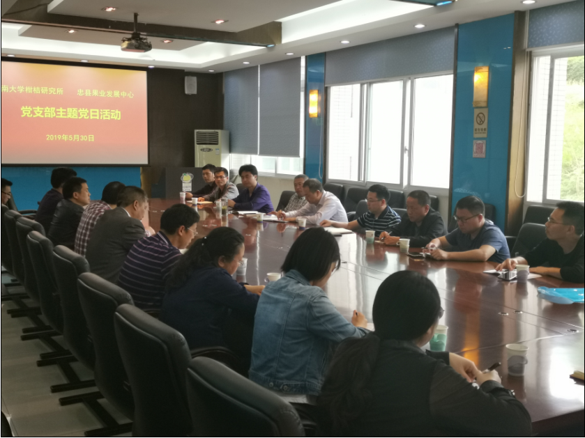 5月31日,重庆市忠县果业发展中心党委全体党员一行18人到柑桔所开展主题党日活动并举行“都市田园综合体”创建研讨会。柑桔研究所党委书记骆云中、副书记黄森,副所长陈云、谭志友及部分党员参加座谈会。