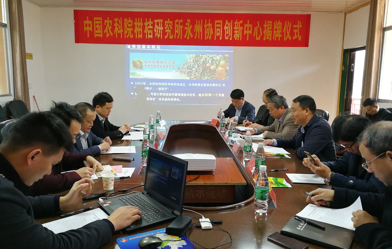 3月12日上午,中国农业科学院柑桔研究所永州协同创新中心在永州市柑桔科学研究所(永州市柑桔示范场)正式挂牌,中国农业科学院柑桔研究所所长陈善春、永州市副市长谢景林出席挂牌仪式。