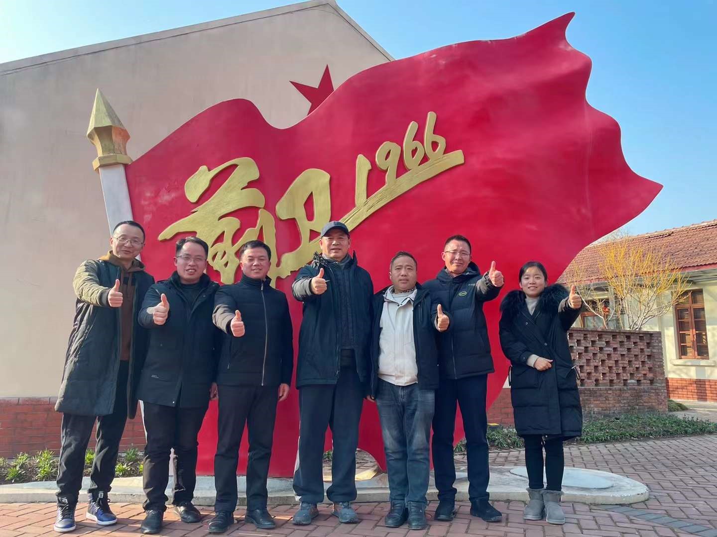 双方在中柑所上海试验站的复原老大门前合影
