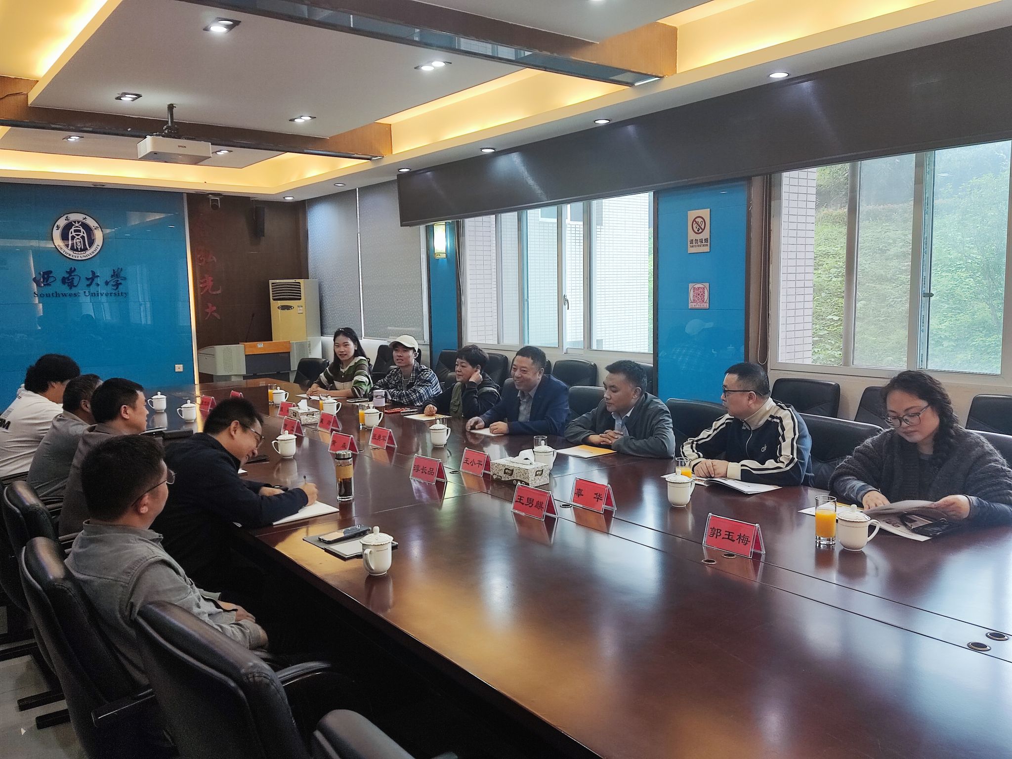 2025年10月19日,南充市高坪区农业农村和水务局党委委员张勇军、果树站王小平,南充市喜橙农业发展有限责任公司粟玲、辜华、郭玉梅及中国农业大学南充柑橘科技小院研究生张果、董方宇一行,前来我所开展柑橘产业交流座谈会。best365英国体育在线柑桔研究所黄森副所长,栽培与生理中心淳长品主任、曹立研究员、王男麒副研究员以及我所丰都红心柚科技小院研究生张佳玲、高焕超出席会议。