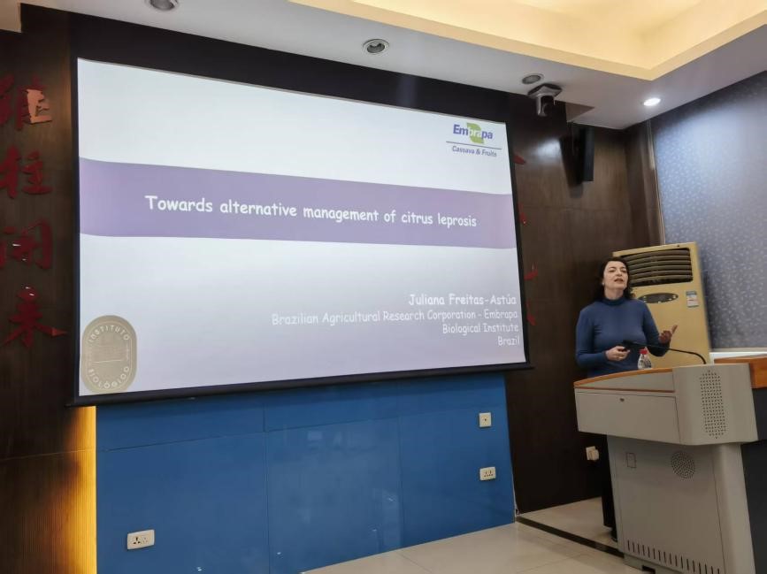 应best365英国体育在线柑桔研究所和柑桔主要病虫害持续控制基础研究学科创新引智基地(111计划)邀请,2025年12月26日,巴西植物病理学会主席、巴西国家农牧业研究院(Embrapa)高级研究员Juliana Freitas-Astúa博士到访我所开展学术交流。