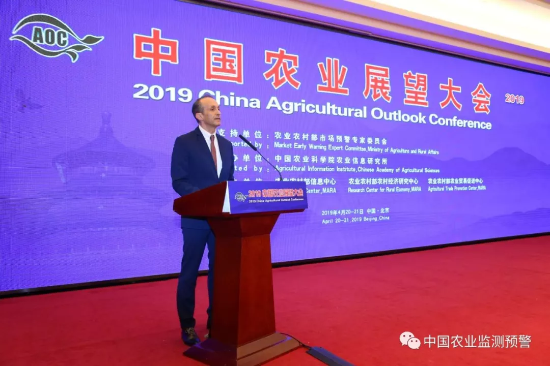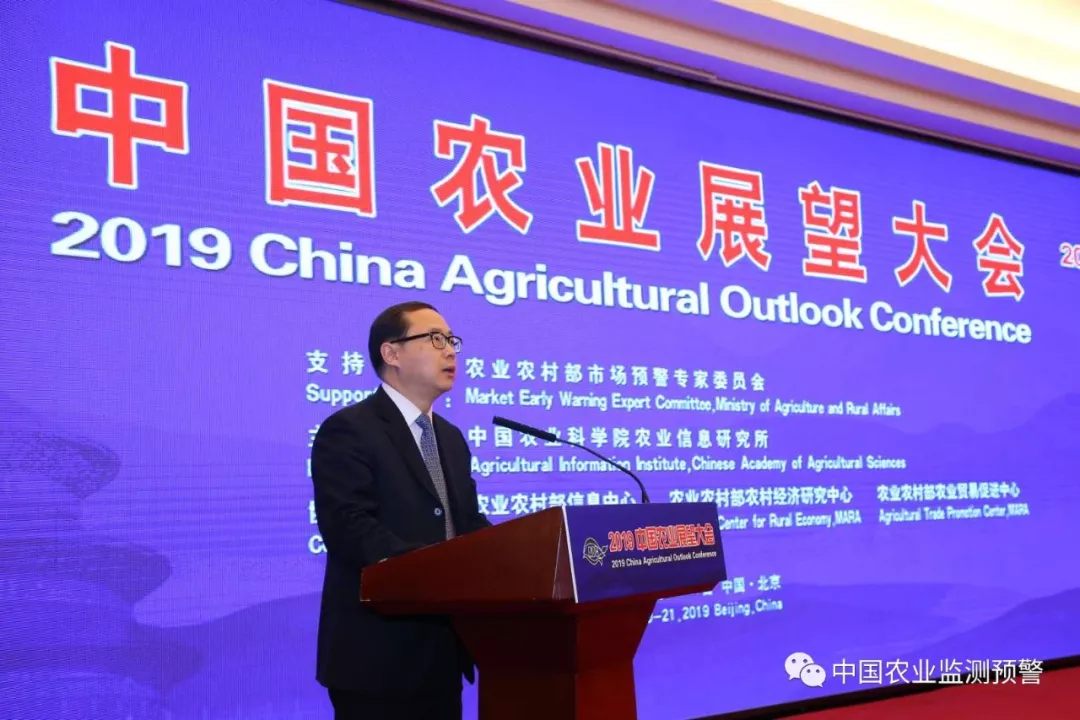 农业农村部副部长韩俊在开幕式讲话中指出,中国持续推进的农业供给侧结构性改革取得积极成效,农业结构进一步优化,由增产导向转向提质导向的理念逐步形成,农产品供给总量充足,市场运行总体平稳。要大力培育土地经营权流转市场,把更多的小农户培育成适度规模经营的家庭农场,提升农业效率。要按照适应世贸规则、保护农民利益、支持农业发展原则,研究完善农业支持保护政策,继续扩大农业对外开放。中国的农业监测预警工作近年来取得积极进展,中国农业展望大会已经成为具有重要影响力的国内外交流平台,要高度关注农产品市场运行中新变化,深入分析研究,用信息引领农业高质量发展。