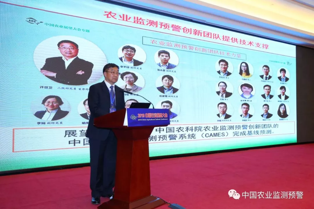 张合成书记在致辞中表示,中国农业展望报告的发布,让生产经营者有了权威的信息供给渠道,各级政府及农业部门有了系统的决策数据支撑,中国农产品供求关系开放和透明程度进一步提高。我国已经建立了一支专业性的分析师队伍,建成了适合中国国情的农业短期和中长期的监测预警分析模型,形成了内外联动的会商机制,已经在引导生产、引导消费、科学调控农产品市场等方面发挥了一定的基础性作用。他表示,中国农业科学院将进一步加强农业监测预警人才队伍建设,建立符合国情农情的农业监测预警体系,建立全产业链的信息监测统计、分析预警、信息发布和信息服务制度,引导现代农业高质量发展。