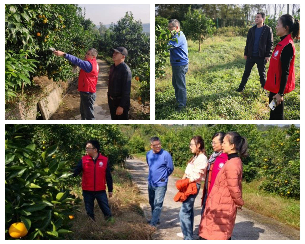 一年好景君须记,最是橙黄橘绿时。特派员们来到柑桔园,只见硕果累累,丰收在望。但在实地察看中发现不同果园存在不同的问题:有的果园因密植已封行;有的因修剪不当造成树冠徒长,“远看一把伞,近看光杆杆”;有的果园树体缺肥缺素,黄化严重;有的果园溃疡病、砂皮病严重,有的初挂果树亟需整形促产等。针对发现的问题,特派员们现场解答冬季施肥、保果和病虫害防治等关键技术措施,实操演示修剪整形的方法和要点。申晚霞帮扶企业种植的是黄桃和花椒,重点强调了冬季管理应该注意的问题,嘱咐企业负责人一定要落实管理技术,确保来年产量。吴涛还将我所主办的《中国南方果树》科技期刊,及她担任主编的《〈中国柑桔〉实用技术文献精编》赠与企业负责人,以帮助他们更好地掌握果树管理技术。