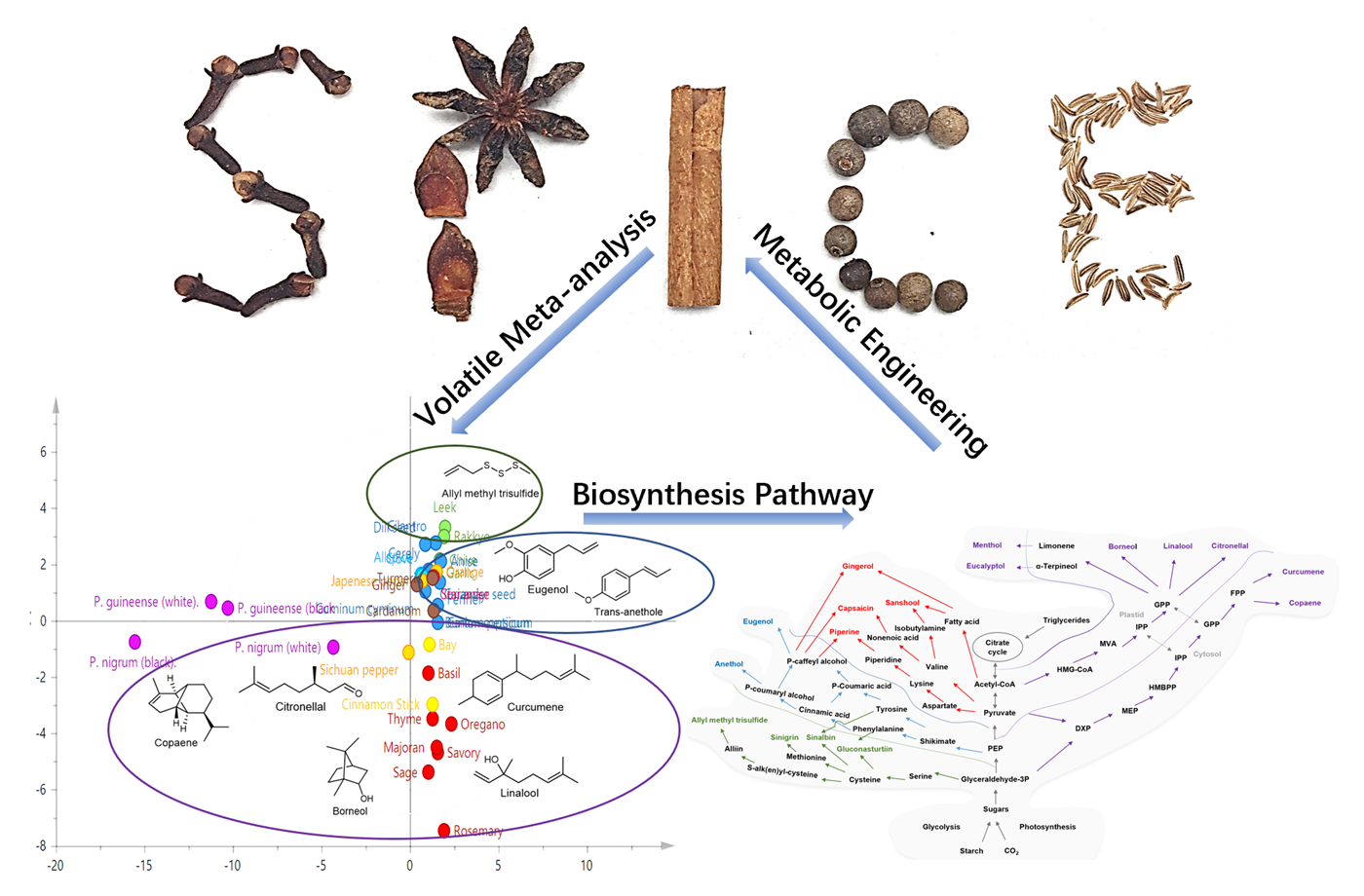 香辛料作为一类特殊食品原料,因其独特的风味和广泛的功能应用,在人类经济社会发展历史上发挥着重要的作用。香辛料原料及其相关产品的供应和价格往往受到地理环境、地缘政治和气候条件的影响。香辛料原料植物中的具有特殊风味的次生代谢产物化合物的组成特征被认为与植物分类密切相关。随着现代生物工程技术的发展,参与香料风味化合物生物合成的相关基因和酶不断被识别和鉴定,这为通过代谢工程方法从香料植物中有目的的大量获得天然风味化合物提供了新的思路。
