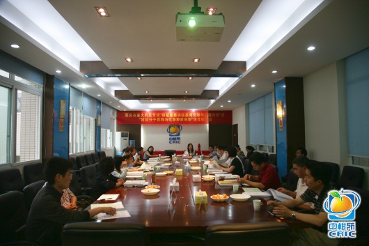 项目首席专家周常勇研究员在会上致辞。市科委农村处古林副处长介绍了重庆市重大科技专项"柑桔新品种选育与深加工"项目的基本情况,市科委监察室陈光海处长就项目验收中的有关纪律和要求做了说明。专家组分别听取了两项目的执行情况汇报和经费使用情况说明,审核查阅了相关资料,对有关问题进行了质询、答疑和讨论,一致认为两项目圆满完成了各项研究任务,取得了较为丰硕的研究成果,项目经费组织管理较好,核算规范,科研专项经费预算执行较好,资金使用合规;专家组一致同意"柑桔重要功能基因的克隆和功能分析"及"柑桔分子育种与种质创新"项目通过验收。