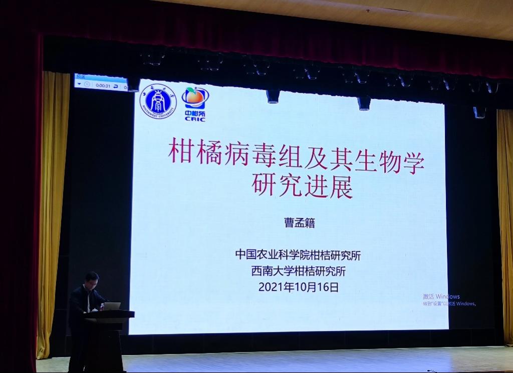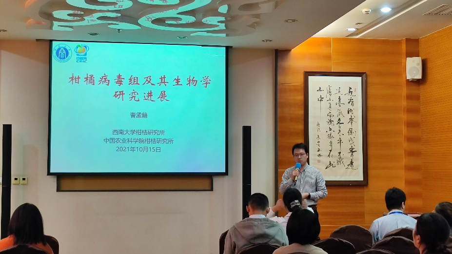 会议期间,来自10多家科研院所和高校的20多位知名专家及企业负责人,围绕果业绿色发展需求,专题讲解了苹果、梨、柑橘、荔枝、猕猴桃、枣等10余种果树主要病虫害在不同地区发生规律和科学原理,系统论述了开展绿色防控研究的重要性,科学揭示了防控规律。曹孟籍研究员在会上做了题为“柑橘病毒组及其生物学研究进展”的大会报告。