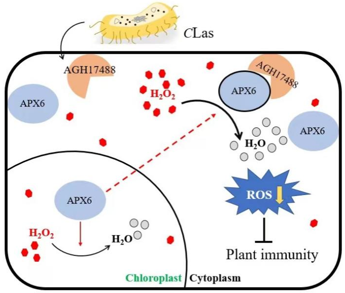 黄龙病菌分泌蛋白AGH17488靶向APX6从而调控寄主活性氧水平