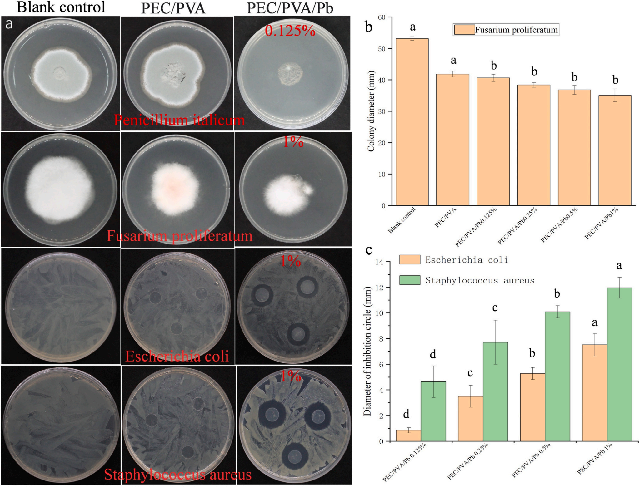 图2 PEC/PVA/Pb薄膜对四种病菌的抑菌活性