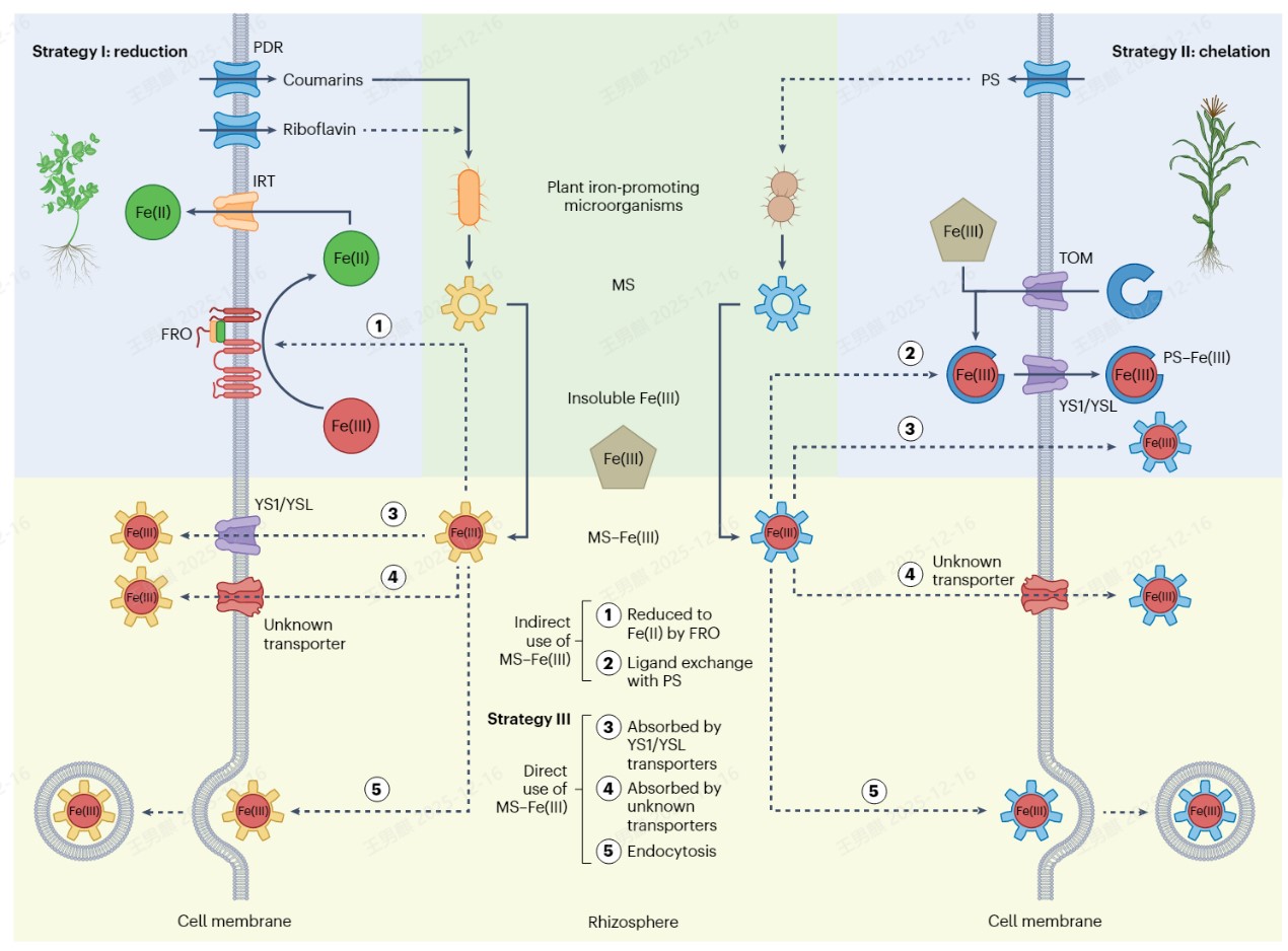 2025年12月15日,国际顶级学术刊物《自然植物》(nature plants)在线发表了中国农业大学左元梅课题组和南京农业大学韦中课题组合作的前瞻性观点文章“Integrating microbial siderophores into concepts of plant iron nutrition”,首次系统性提出植物铁吸收的“第三机制”(机理III),将根际微生物从辅助角色提升至与植物自身机制并重的核心地位。我所青年教师王男麒副研究员作为共同第一作者参与了这项研究。