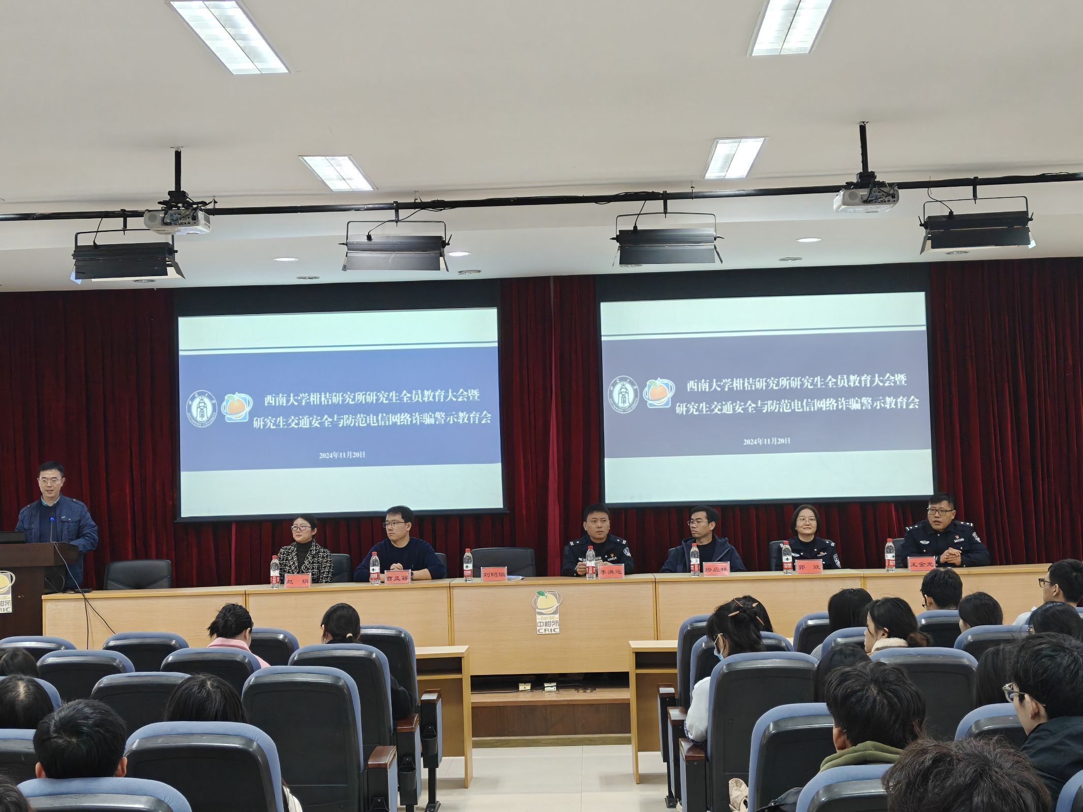 为全面提升研究生的安全意识与防范能力,特别是针对交通安全和电信网络诈骗两大领域,我所于11月20日14:30在所综合楼六楼会议室召开了研究生全员教育大会。此次大会特别邀请了北碚区歇马派出所、朝阳派出所及巴南区交巡警支队的警官进行专题讲座,旨在通过实际案例与法律知识相结合,为全体研究生敲响安全警钟。