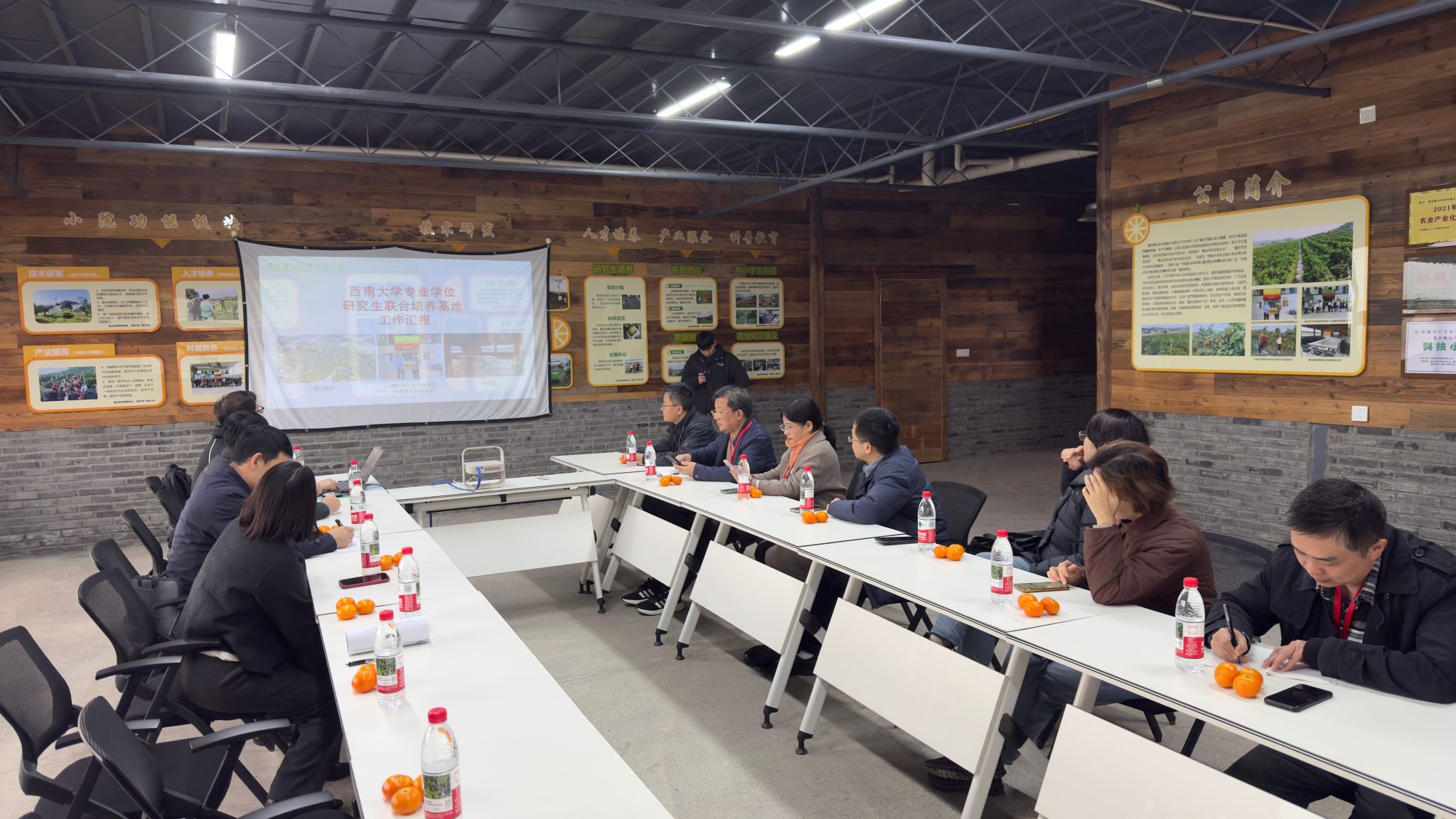 督导检查会上,重庆橘为农业有限公司刘放经理向专家组全面汇报了基地的发展历程、研究生联合培养管理机制及在培研究生课题研究进展等核心内容。随后,基地校内负责导师付行政教授详细介绍了校内导师与基地校外导师的常态化交流机制、合作科研项目及联合指导研究生的实践模式。我所赵娟科长结合本所实际,汇报了学术学位与专业学位研究生分类培养的核心举措,重点介绍我所专业学位研究生立足产业需求,深化产学研融合,解决柑桔产业品种选育、智慧农业应用等实际问题。专家组高度评价我所研究生培养定位清晰、特色鲜明,产学研结合成效显著,并围绕专业型研究生校外联合培养的制度标准化、校内外导师合作项目拓展等议题展开深入探讨,提出建设性指导意见。