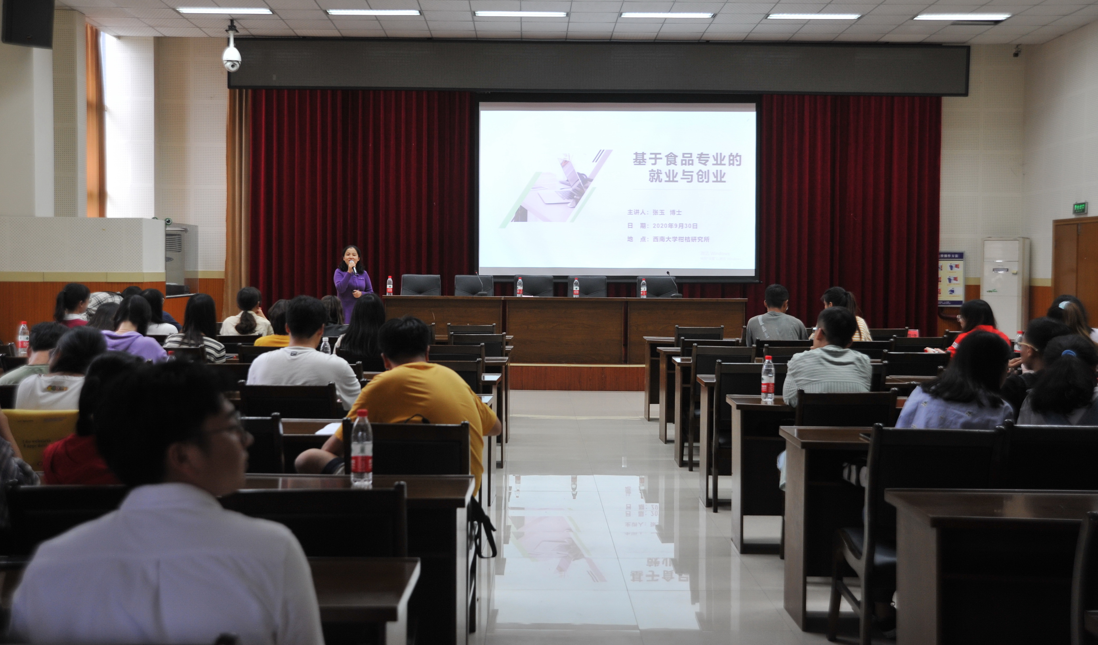 2010级食品科学专业博士研究生张玉分享了她的求学经验及毕业留校的经历,并以食品科学专业为例,进行了就业和创业指导。