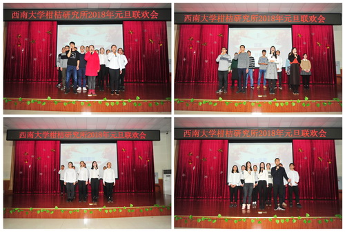 律回春晖渐,万象始更新,送走硕果累累的2017,迎来充满希望的2018!2017年12月28日下午,柑桔研究所主办的元旦联欢会于研究生公寓多功能厅隆重举行,党委书记骆云中、副所长赵晓春、部分教职工及全体在所研究生一同观赏了这场红色盛宴。