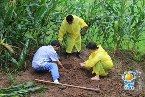 在红岩村,淳长品老师冒着大雨,深入泥泞的田间,亲自为农户演示柑桔栽培技术,并叮嘱他们柑桔苗根系脆弱,要用细土封窝培土,栽培过后要及时补浇40公斤定根水。在淳老师的指导下,同学们帮助果农熟练掌握柑桔幼苗栽培技术。60多岁的果农张大爷激动地拉着淳老师和同学们的手,为大家耐心细致的讲解连连道谢。