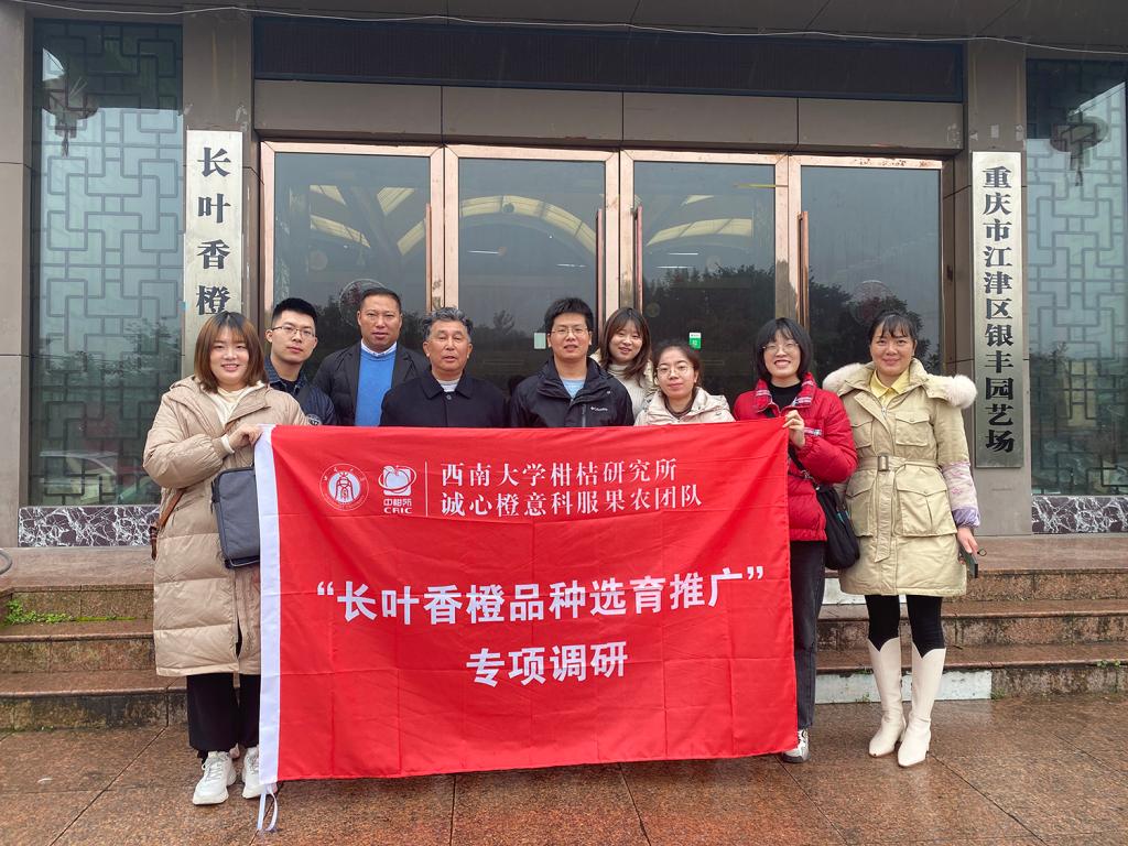 为贯彻落实党的十九届六中全会精神和学习贯彻习近平总书记关于“三农”工作重要论述,切实提升研究生的社会责任感、实践能力和家国情怀,助推乡村振兴战略,服务柑桔产区,柑桔研究所“诚心橙意”科服果农团队在黄林华老师的带领下,于2022年1月7日在重庆市江津区开展了以“长叶香橙品种选育推广”为主题的专项