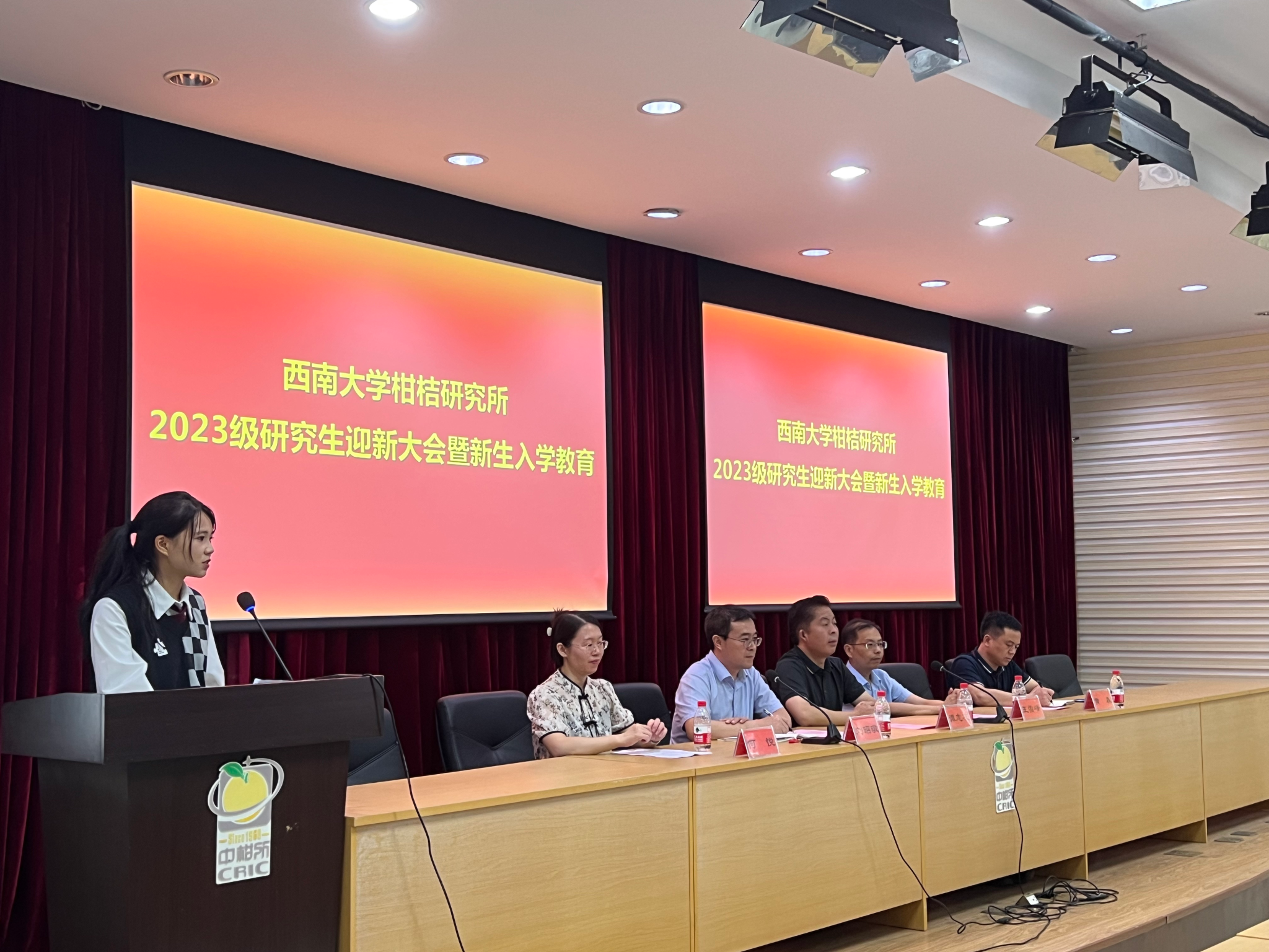 2023级果树学专业硕士研究生赵赛澜作为新生代表发言。表达了同学们从五湖四海相聚在柑桔研究所,都怀揣着对柑桔、对科研、对未来的热切期待,迎接着新生活的开始。从曾勉教授到无数从事柑桔研究的科研工作者,始终秉持着“壹志嘉树,修远求索”的所训理念。赵赛澜表示,从本科生跨越到研究生的行列,增长的不应只是年纪,更应该是对自我责任的认识与对科研精神的体悟,这是一场不断探索未知领域的冒险。首先要树立远大的目标,其次要学会成长,持续保持着好奇心和求知欲,最后要勇于尝试,在失败中发现新的意义和可能。先辈们已经将接力棒传递到了新一代柑桔人的手上,需要你我的共同努力,柑研所的传奇故事也有待我们共同书写新的篇章。