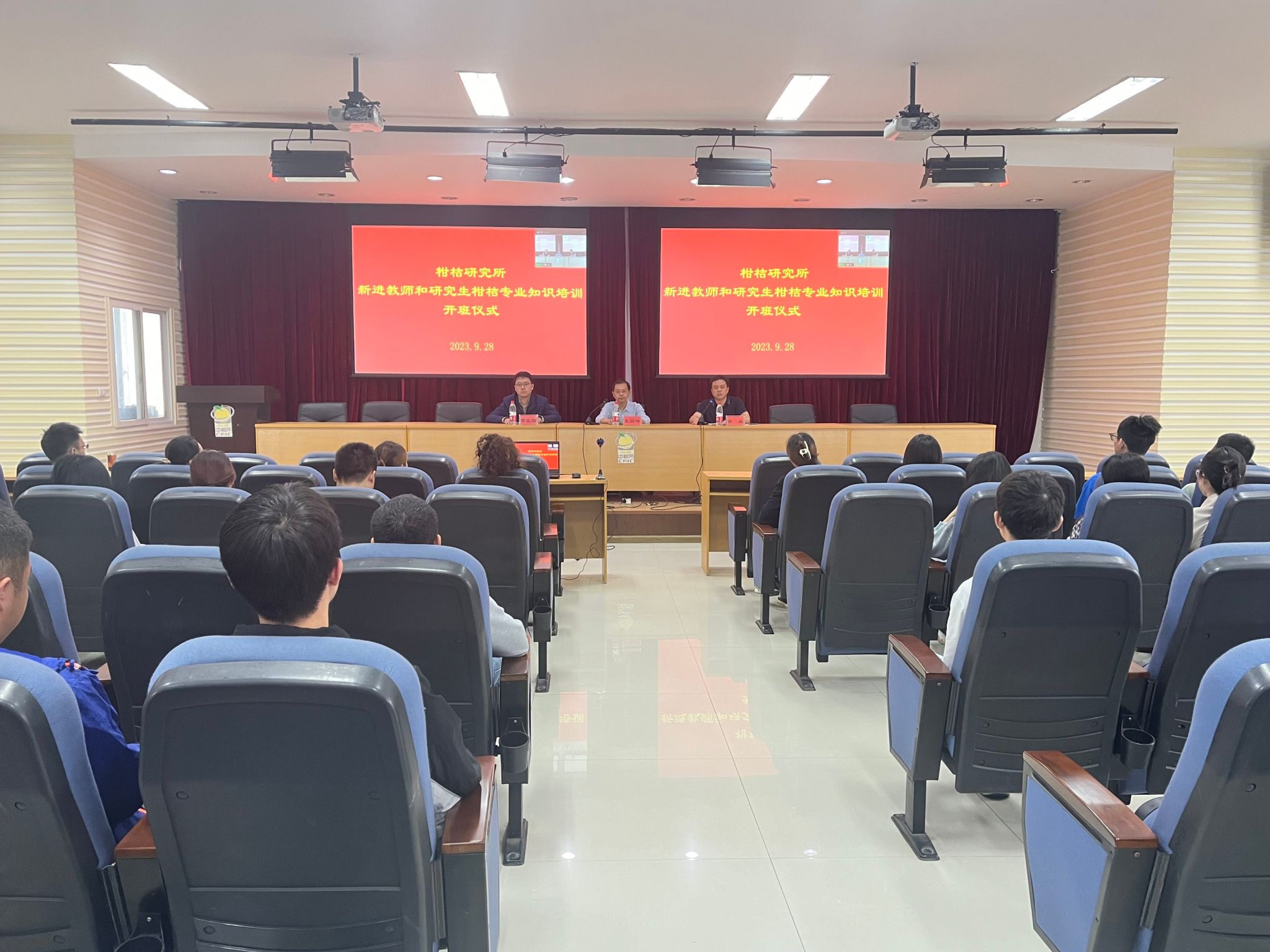 为了提升我所青年科技人员和研究生在柑桔产业领域的专业素养和实践能力,深入了解柑桔产业发展趋势和全产业链技术研发进展。9月28日上午,我所在综合楼六楼报告厅举行2023年柑桔专业知识培训开班仪式。所长王雪峰、副所长黄森、所长助理曹孟籍、新入职教职工及2022级全体研究生参加了会议,会议由黄森副所长主持。