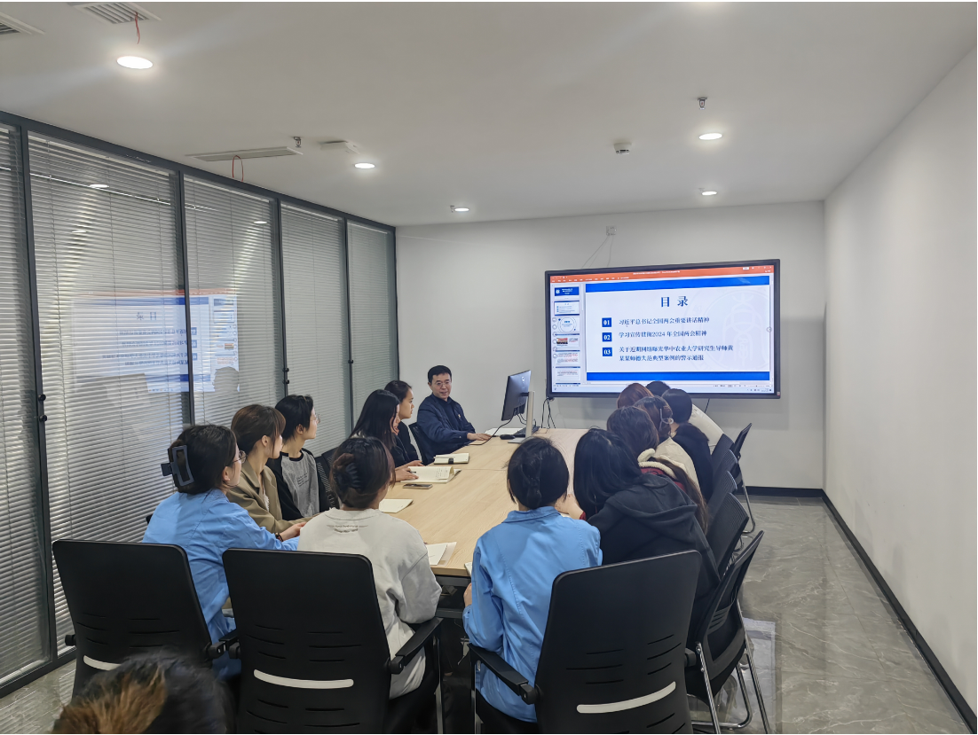 在随后的学习交流会上,刘昭暾领学了习近平总书记在全国两会期间的重要讲话精神,向同学们传达了习近平总书记关于科技创新、人才培养等方面的重要论述,并解读了全国两会精神的核心内容。他强调,作为新时代的科研工作者,同学们要紧密结合国家发展大局,将学习成果转化为推动科研工作的实际行动。随行的赵娟和曾晓琴两们老师也分享了关于研究生科研管理和学生工作的经验与心得,鼓励同学们珍惜在校时光,不断提升自身能力。在交流环节,柑桔研究所研究生第二党支部金凤小组的党员和积极分子们纷纷发言,畅谈自己近期科研、生活中的思考和感悟,以及对全所发展、种创中心学习生活期间的意见与建议。他们表示更加明确了科研工作的方向和目标,将以此次学习交流活动为契机,努力在科研道路上取得更大的突破。