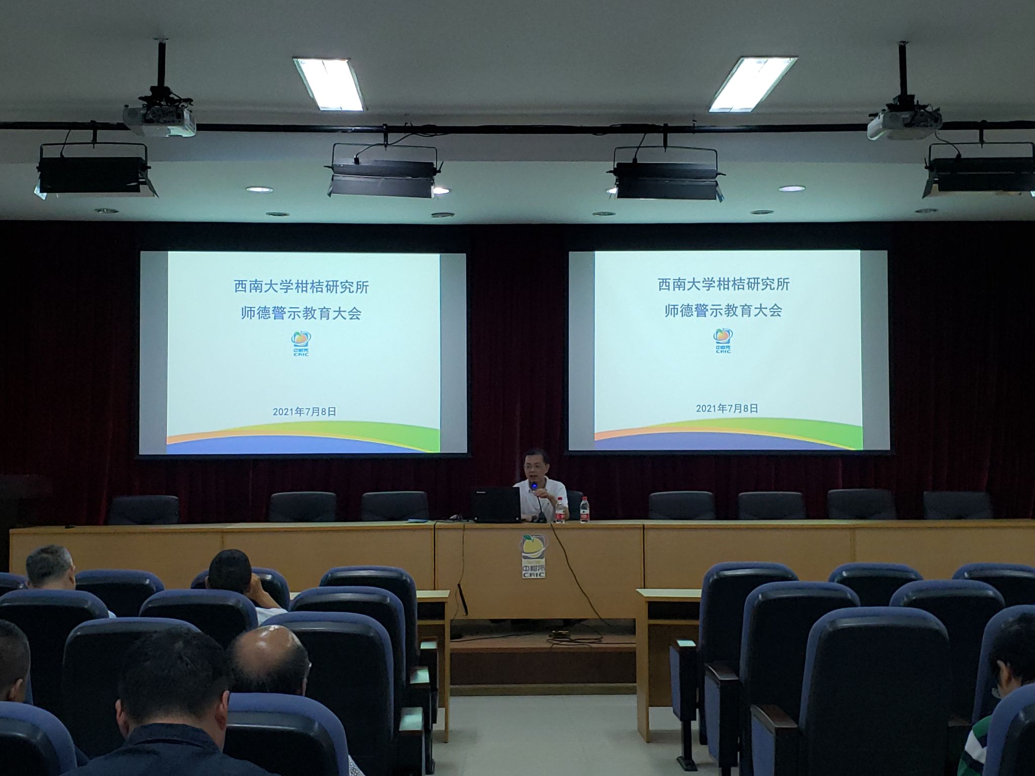 7月8日上午,柑桔研究所在综合大楼六会议室,召开师德警示教育大会,柑桔所所领导和教学科研教师40余人参加,会议由王雪峰副所长主持。会上,集中学习了教育部印发的《新时代高校教师职业行为十项准则》。