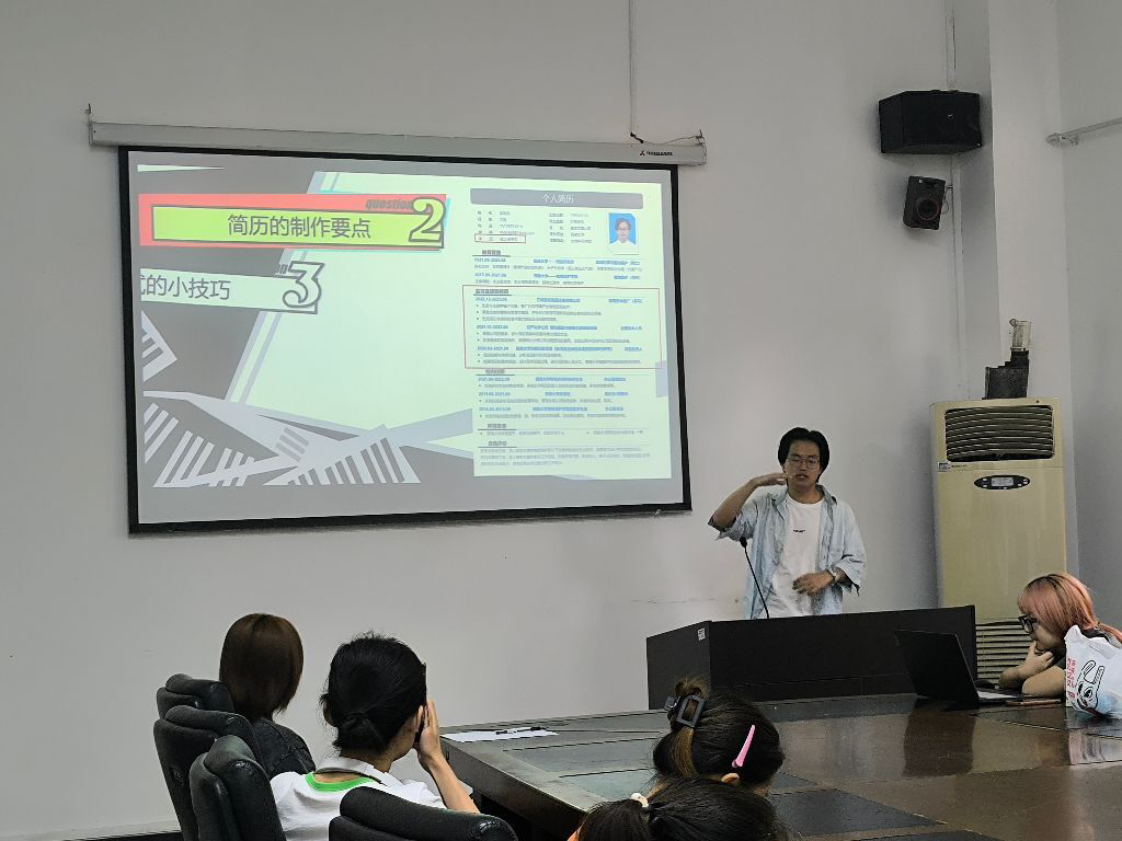 凭借较为出色的表现成功签约中交物业服务集团有限公司的李明玥,深入浅出地解析了企业求职的各个环节,从简历制作到面试技巧,他都进行了详细的讲解。他强调,简历的制作要精准地把握内容的选择和格式的设计,而面试时则需保持从容不迫、淡定自如的态度。最后,他寄语在座的同学:“这个世界就是一个巨大的草台班子,对这个世界祛魅,你才能做自己,成为那个你想成为的自己。”